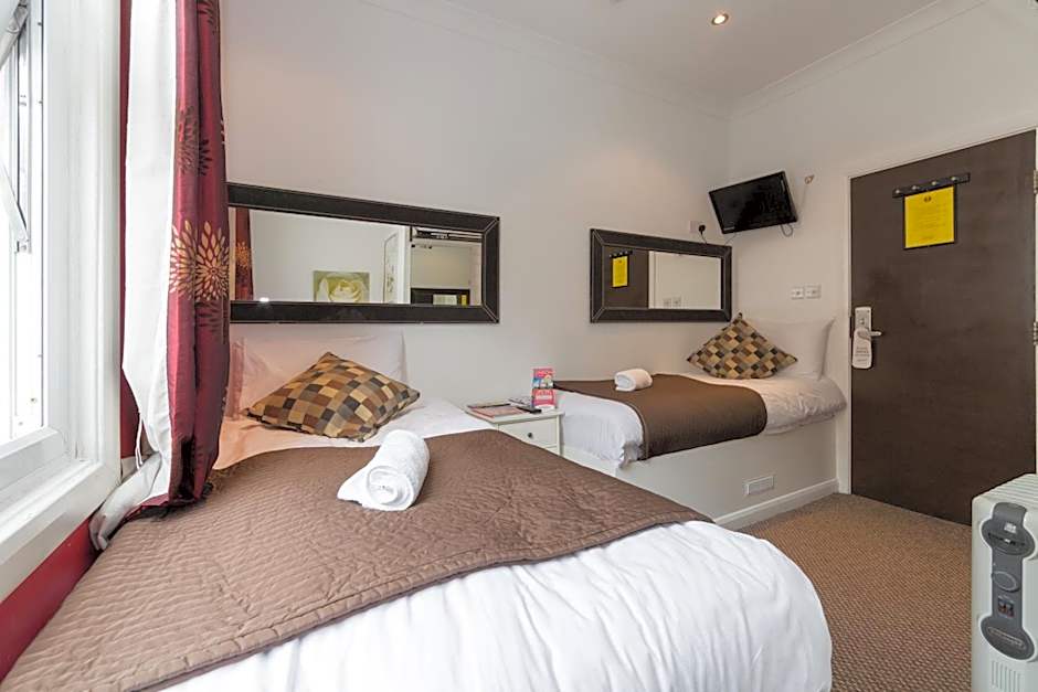 This compact room features a 2 beds with a memory foam mattress and pillows. The private modern en suite is equipped with a Hansgrohe shower and toiletries. Facilities include tea/coffee, Freeview channels, bath towels and a hairdryer. There is also free WiFi and a USB charger.